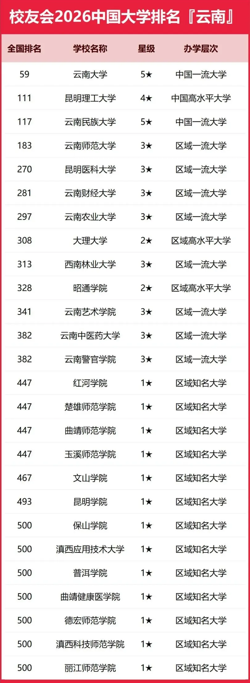 导语:高考志愿怎么填?云南高校实力哪家强?2026校友会中国大学排名云南榜单新鲜出炉,27所高校上榜,云大稳居榜首,昆明理工大学冲进全国前120,表现亮眼。这份排名或许能给你一些参考。根据2026校友会中国大学排名数据,云南省共有27所高校上榜,呈现明显的"一超多强"格局。