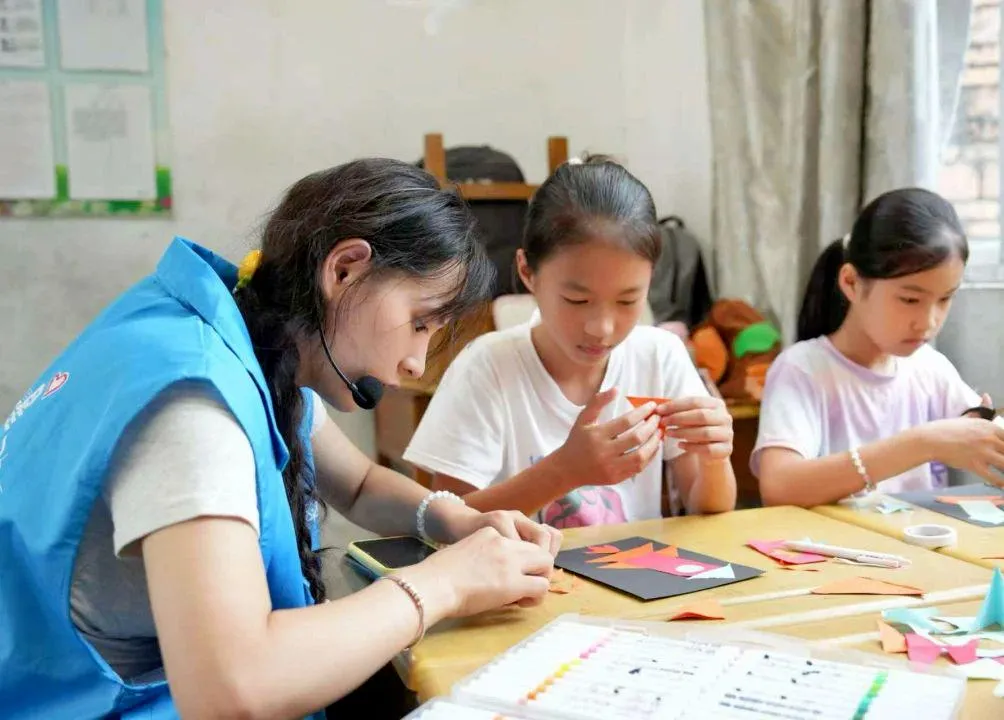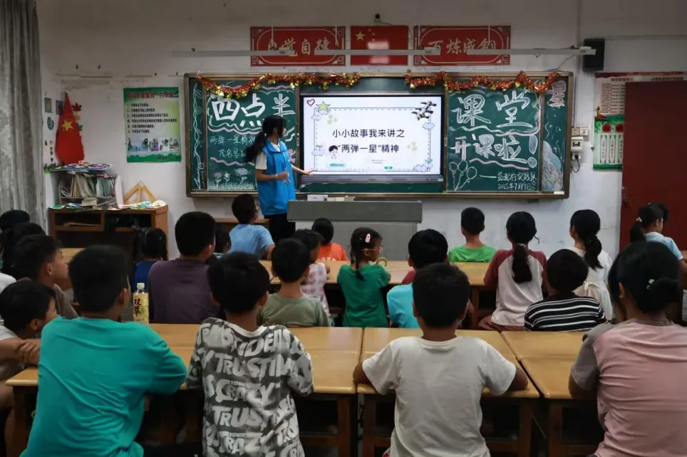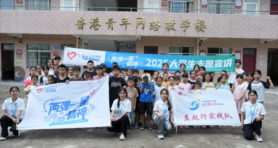 荣誉的背后,是队员们炎炎夏日的扎实耕耘。2025年暑期,实践队深入茂名市电白区的多个村落与小学,将“两弹一星”精神化为生动易懂的乡村课堂。他们创新设计“七个一”系列课程,带领孩子们在“核你一起塑未来”泥土课中捏出梦想,在纸火箭制作中模拟腾空,在“华龙一号”积木搭建中感悟大国工程。通过情景模拟、互动游戏,深奥的“热爱祖国、无私奉献,自力更生、艰苦奋斗,大力协同、勇于登攀”二十四字精神,变得可触、可感、可参与。