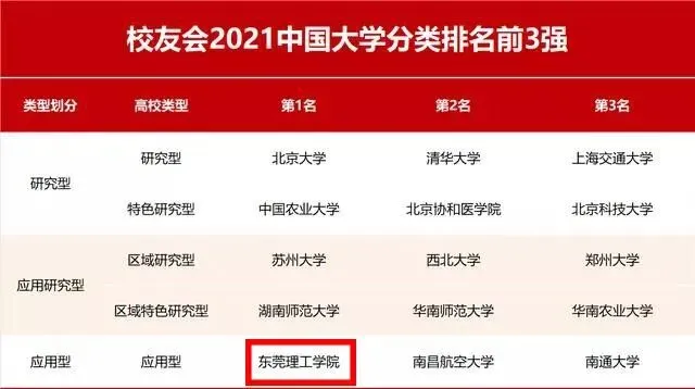 报告显示,东莞理工学院2021年综合排名是149位,比2015年的406位提升了257位,并连续三年(2019-2021年)蝉联中国应用型大学排行榜首,创造地方高校超常规发展的“莞工模式”。