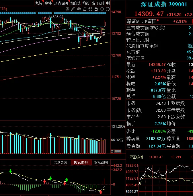 深成强势站上所有均线,MACD形态良好