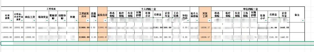 数字惊艳,远比我预期的要高。更让我意外的是明细那一栏:基本工资、职称津贴、司令补贴,绩效奖金、通讯补贴、高温补贴……每一项列得清清楚楚。还有足额缴纳的五险一金,甚至企业年金都安排上了,真是羡煞旁人。