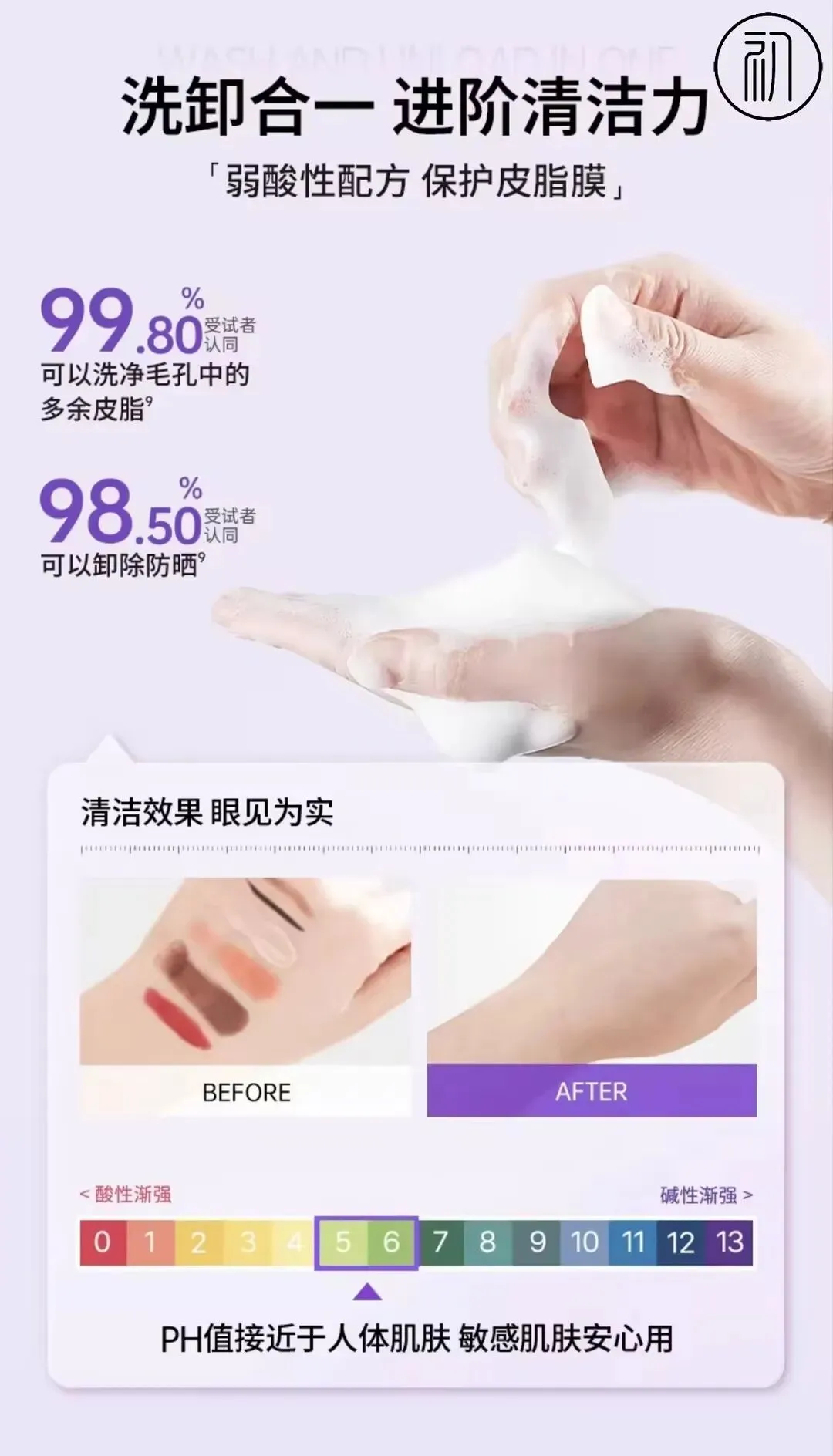 - 氨基酸+APG双温和表活体系:搭配马齿苋舒缓成分,洗后肌肤即时水润度提升35%,4小时后仍能稳定保持88%!干皮秋冬救星!