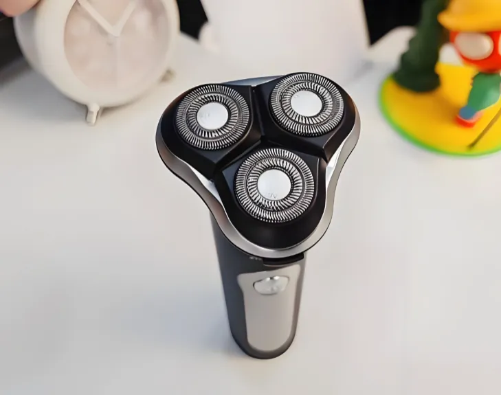 【刀头数量】该产品采用三头旋转式刀头设计,这是目前实用的刀头数量,三个刀头呈三角分布,可紧密贴合面部曲线,不管是圆脸还是方脸,能覆盖脸颊、颈部等难剃部位,减少留下剃须残留。
