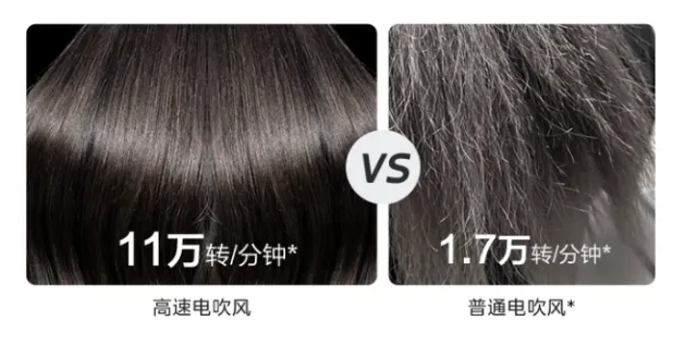 低转速有刷电机:传统吹风机一般在1-2W转速,动力弱、能耗高,运行时噪音大、振动明显,易磨损,使用半年后易出现风速下降、性能衰减,吹发时风力时大时小,体验感差;