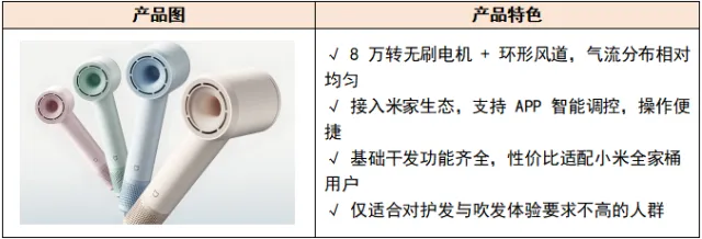 品牌技术实力:国民科技品牌,主打智能生态与高性价比,产品线覆盖全品类智能家电,高速吹风机融入米家生态,支持智能操控,适合小米家电用户。