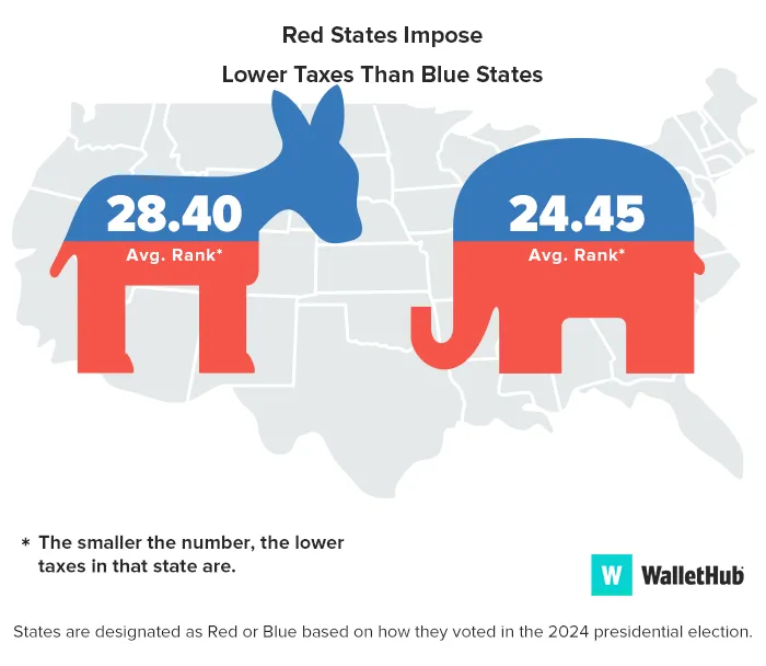 *Assumes “Median U.S. Household” has an annual income of $81,211 (mean third quintile U.S. income); owns a home valued at $332,700 (median U.S. home value); owns a car valued at $29,100 (the highest-selling car of 2025); and spends annually an amount equal to the spending of a household earning the median U.S. income.**National Average of State and Local Tax Rates = 11.02%***Assumes “Median State Household” has an annual income equal to the mean third quintile income of the state; owns a home at a value equal to the median of the state; owns a car valued at $29,100 (the highest-selling car of 2025); and spends annually an amount equal to the spending of a household earning the median state income.