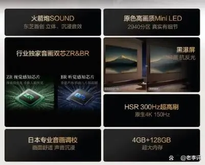 它的音画双芯Mini LED能同时优化画面和音质,让画质更清晰、色彩更自然,音质更立体,火箭炮SOUND功能能带来影院般的音效,不用额外搭配音响,就能听到清晰立体的声音,300Hz黑瀑屏能有效减少画面拖影,看高速运动的画面也特别流畅,就算是看体育赛事、动作电影,也不会出现模糊的情况。此外,它能享受家电国家补贴,购买更划算,4K画质清晰细腻,操作简单易懂,老人小孩都能轻松上手,机身设计简约大气,适配各种家居风格,东芝品牌品质靠谱,使用起来更放心。