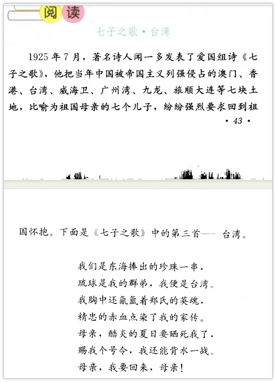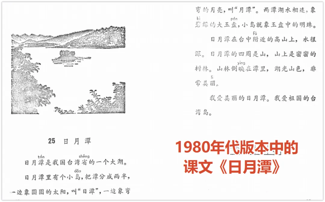 从1970年代开始,这篇课文就一直保留在教材中,它就像一扇窗,让孩子们从小就知道台湾有个美如画的日月潭,在心里种下对宝岛台湾的向往。只要接受过义务教育的人,说起台湾就会想起日月潭,说起日月潭就会念起台湾,它让两岸同胞的心靠得更近。