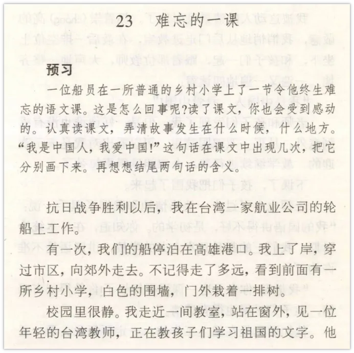 课文讲述了抗战胜利后,“我”遇到一位年轻的台湾教师,他正认真教孩子们一遍又一遍朗读 “我是中国人,我爱中国”。“我”也被这动人情景吸引,走进教室和孩子们一起朗读。