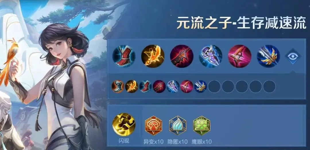 这套出装是我自己常用的出装,感觉容错上还是挺高的,大招起手因为冰痕之握的减速可以扫出更多的伤害,冷却缩减其实元流射手也很需要。