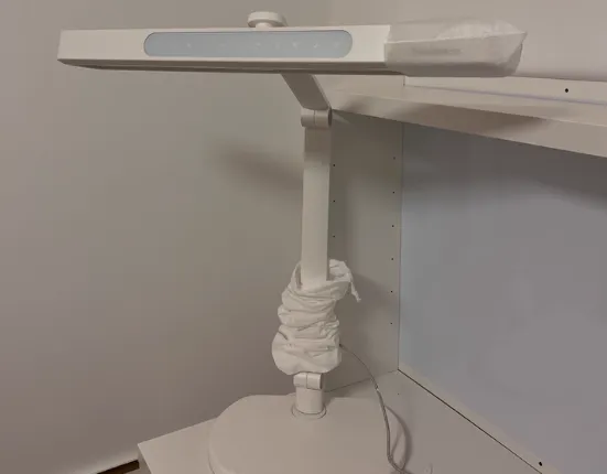 该产品采用可视化触控板控制,操作丝滑。它增加了NIR红光灯珠,可以帮助减缓用眼疲劳,光照均匀,达到了AA级标准,灯头更大,能减少照明阴影。它采用抗菌材料,对儿童更加友好。