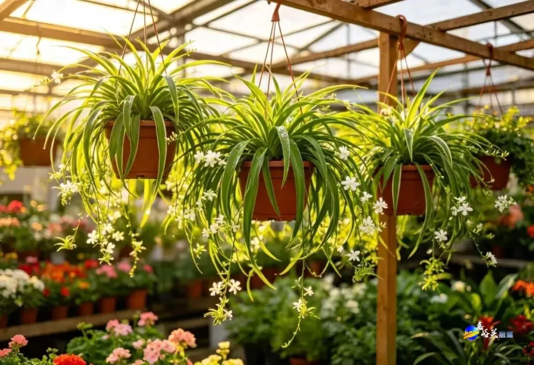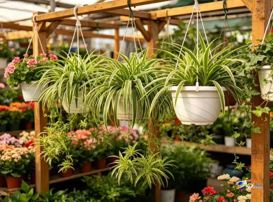 最显眼的就是那排悬挂的吊兰