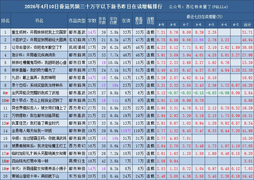 番茄新书榜范围:30万字以下、已签约未下架、已经开始推荐的且未断更,完结未超过90天的番茄原创作品