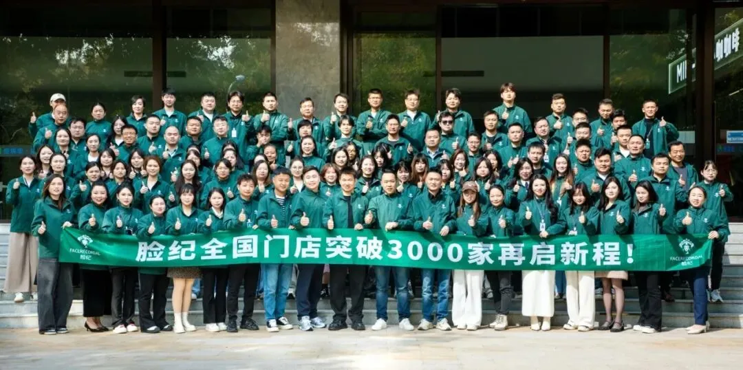 截至2026年4月,脸纪全国门店超3000家,覆盖300+城市、500+县市,年服务超500万人次。扩张速度创行业纪录:单月新增最高400+家、日新增峰值120家,在水光调肤细分赛道门店数量稳居全国前三。