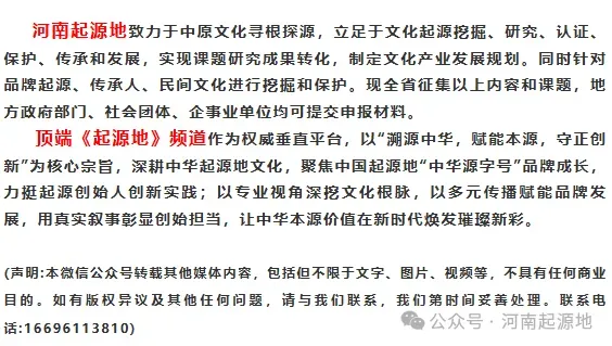 为深入贯彻文化强省建设战略部署,深度挖掘河南起源地文化内涵,激活本土品牌发展活力,培育一批彰显地域特色、承载文化底蕴、具备市场竞争力的起源地品牌标杆,助力本土品牌出圈升级、提质增效,切实推动河南起源地文化与品牌产业深度融合、高质量发展,现正式启动河南起源地品牌百强培育计划,并面向全省推出全程免费公益宣传扶持福利,有关事项通知如下: