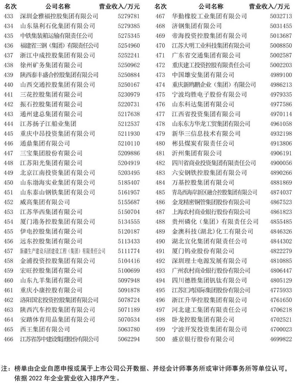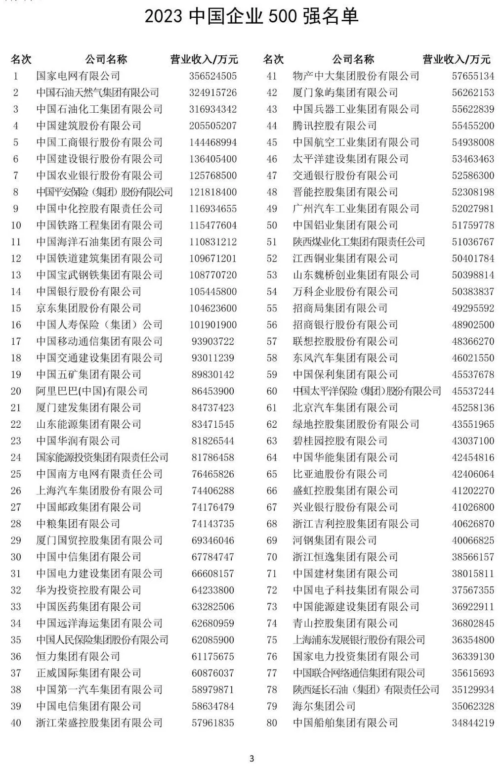 9月20日,在2023中国500强企业高峰论坛上,中国企业联合会、中国企业家协会连续第22次向社会发布了“中国企业500强”名单。
