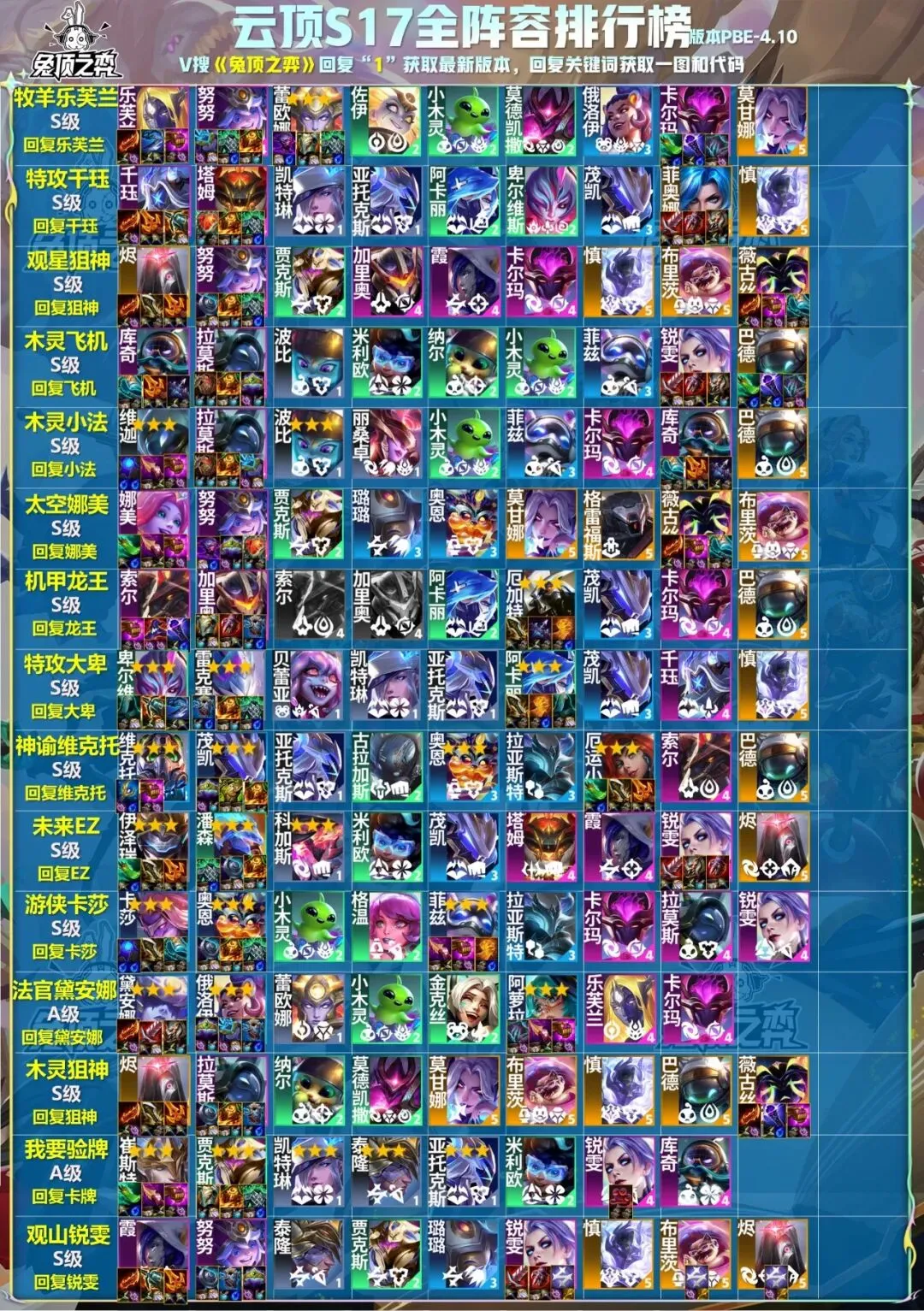 >云顶S17最强阵容排行榜(4.12最新实战榜单)