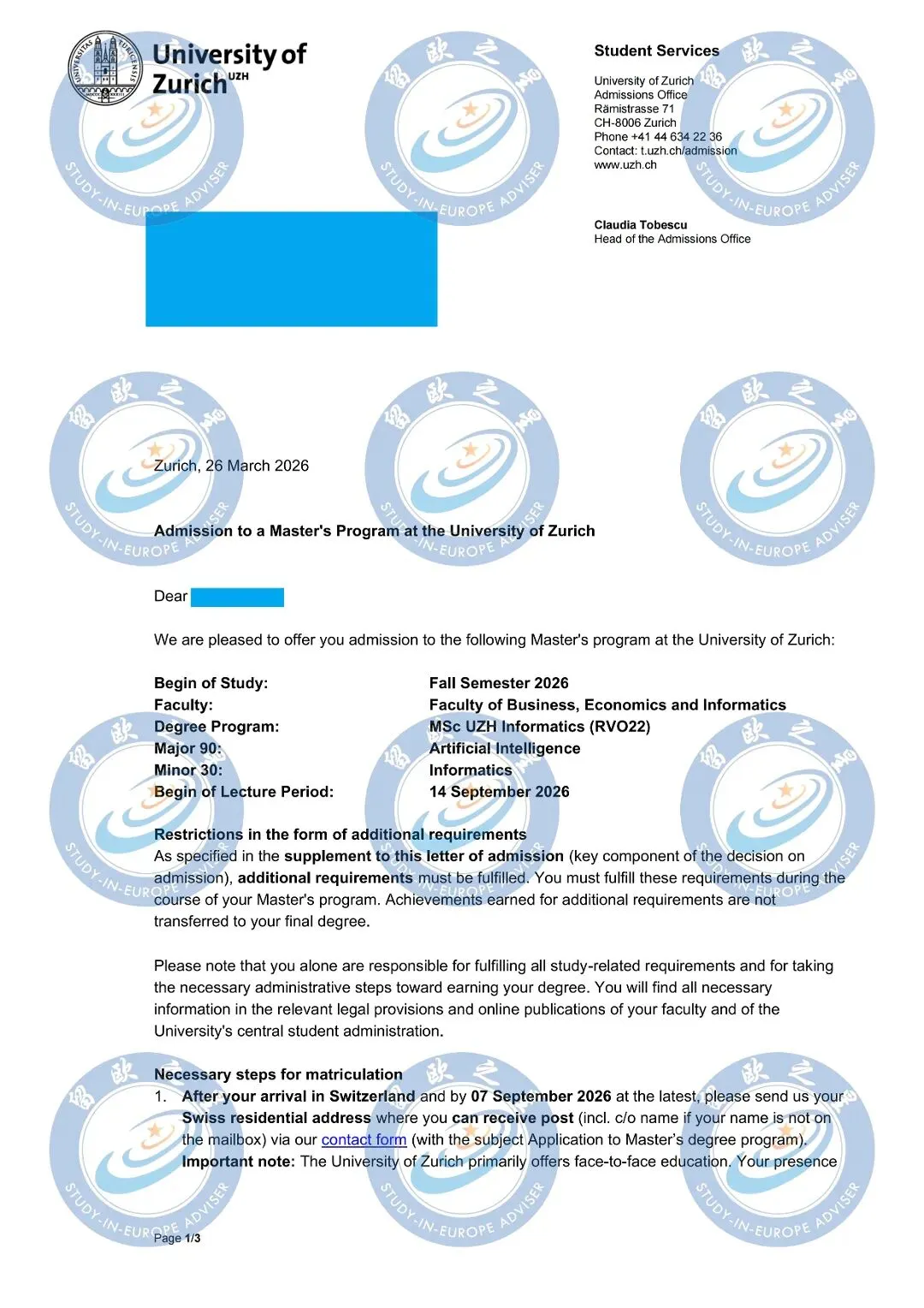 Master of Science UZH in Informatics: 信息学硕士