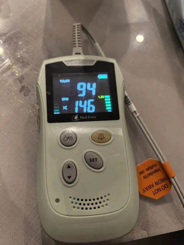 康泰CMS60D血氧仪6秒出数,也算流畅,但它是掌上分体式设计,需要连接探头,操作比町石繁琐,我妈年纪大了,单手操作有点费劲,出数速度也比町石慢了一半,胸闷时等待会有点着急。其他几款里,氧大夫FS20I出数最慢,要8秒才能出结果,有时候还会轻微延迟,乐普POD-2不仅出数慢,偶尔还会出现出数卡顿的情况,我妈有时候嫌麻烦,就不想测了,完全适配不了长辈的需求。