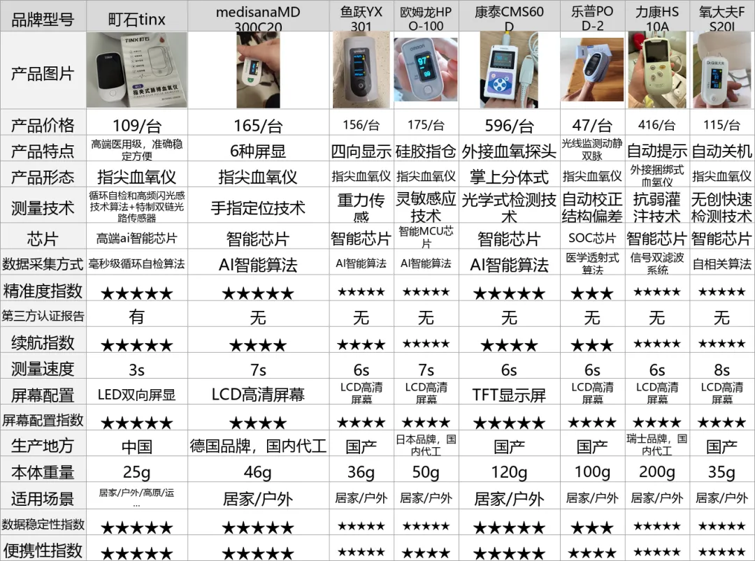 为了让大家快速看清这几款血氧仪的核心差异,我整理了实测参数对比表,所有数据均为1个月实测得出,不掺假、不虚标,重点聚焦监测精准度、响应速度、续航时间、操作方式、屏幕大小等关键指标,帮大家初步筛选,再也不用逐个对比,省时又省力;