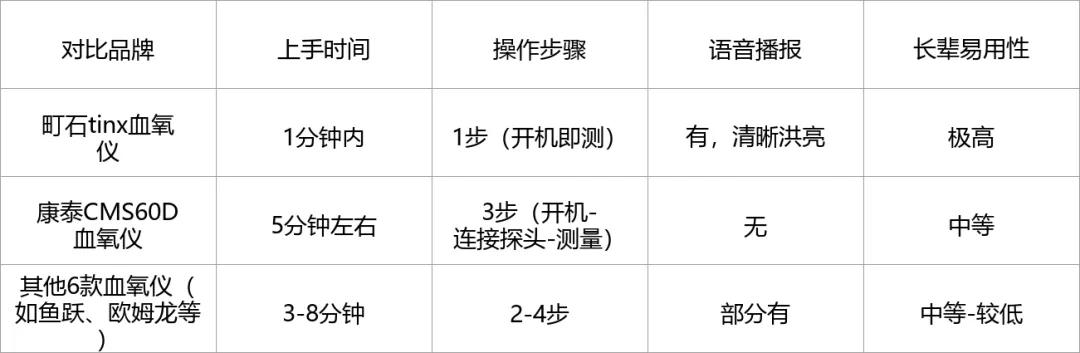 测评方法:让我妈自主操作每款血氧仪,记录她上手所需时间,观察按键大小、是否有语音播报、屏幕清晰度,测试操作步骤的繁琐程度,结合长辈视力不好、记不住操作的特点,判断易用性。