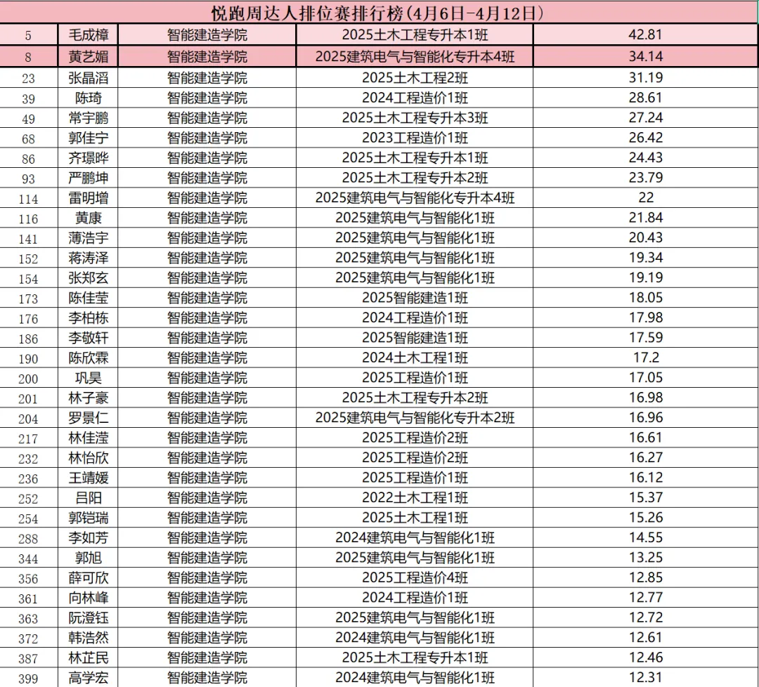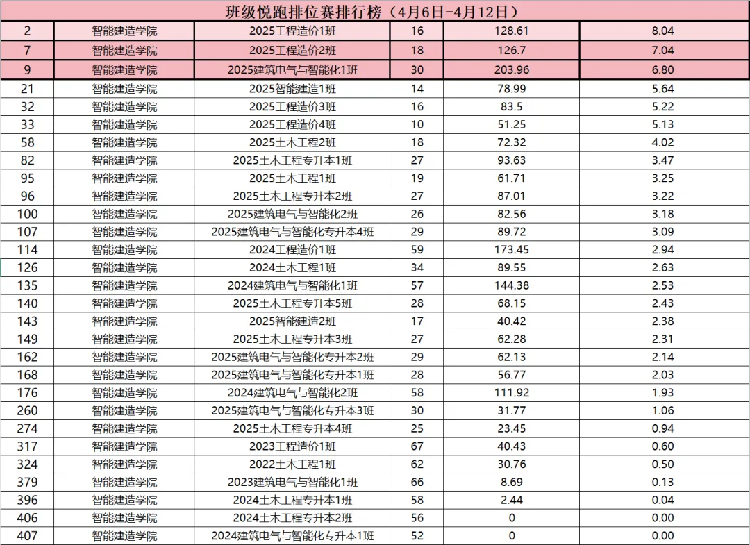 在每一次并肩奔跑里迸发智能建造学院的团队活力,于每一步携手前进中绽放青春光彩!期待更多班级与个人踏入悦跑征程,在协作运动里收获健康与凝聚力,在同心奔跑中镌刻独属于智能建造人的青春华章!
