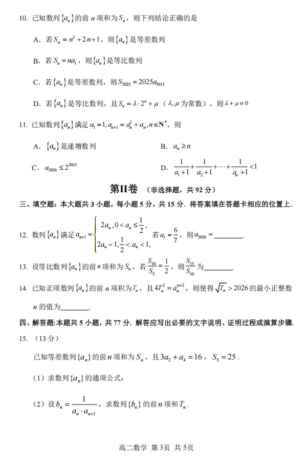 【百强校】【黑吉辽蒙卷】【高二】黑龙江省哈尔滨市第三中学2025—2026学年度下学期高二学年4月月考(4.10-4.11) 全科试题卷+答案无页眉页脚页码无添加无私货无夹带无水印的纯净电子版下载: