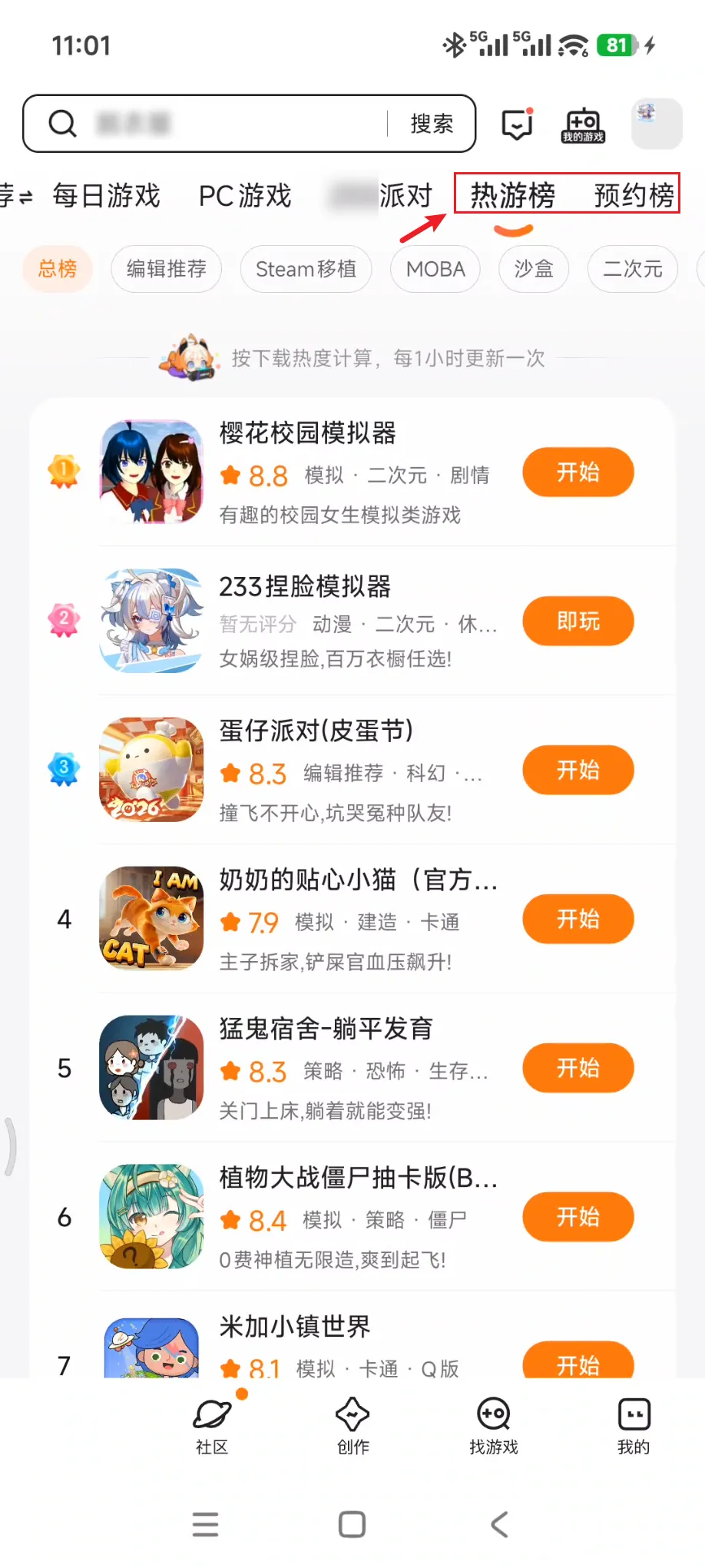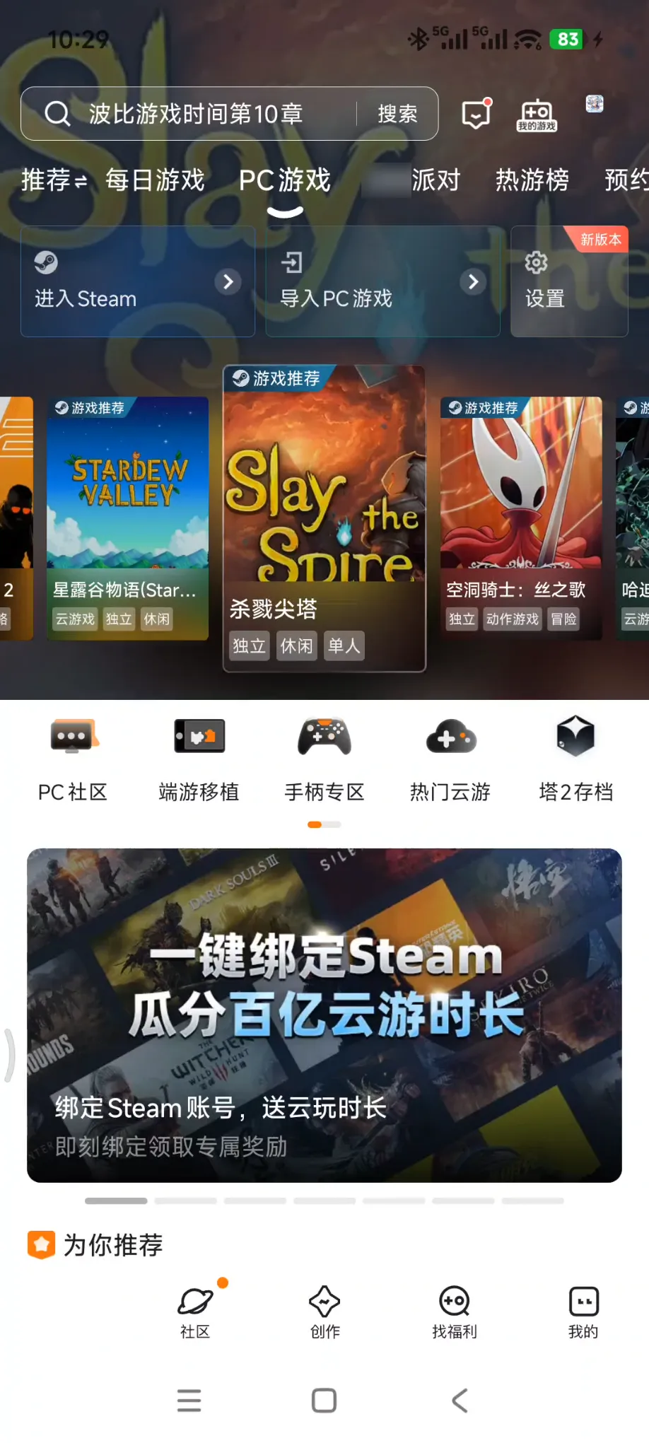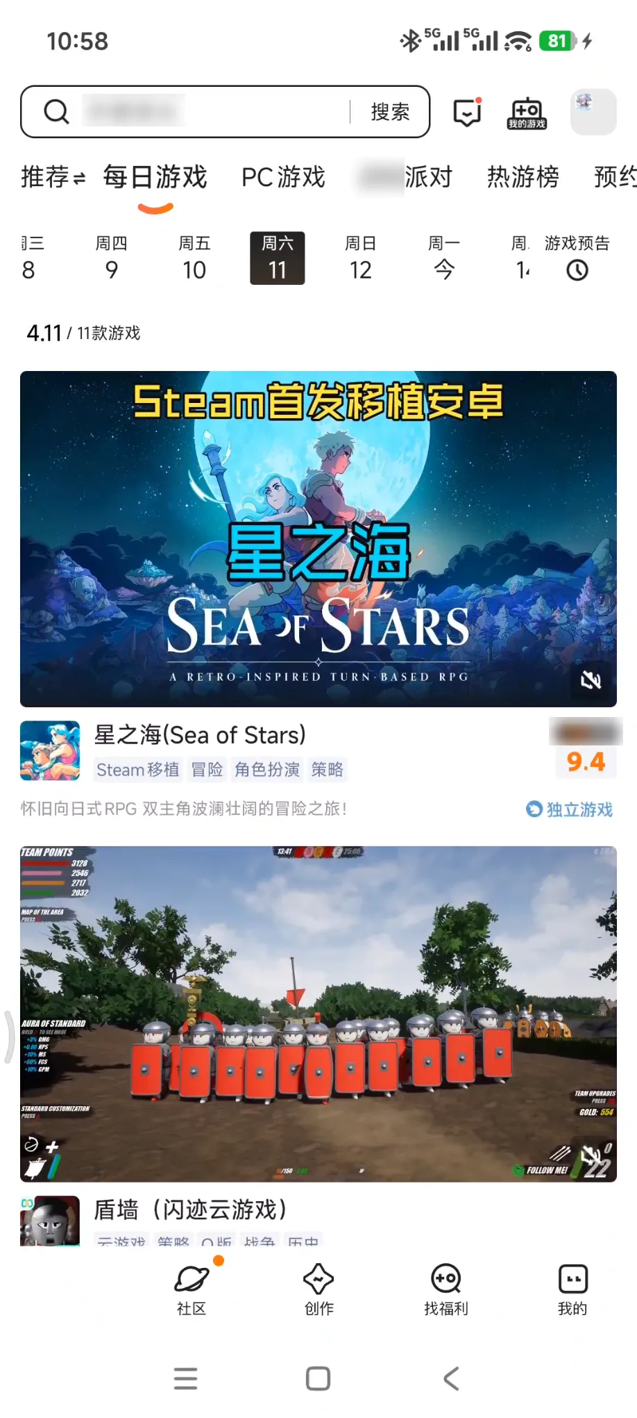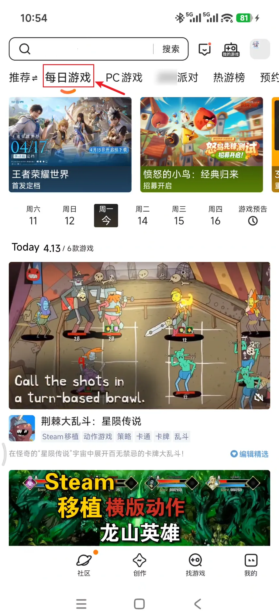 顶部,也附带了每日游戏推荐。