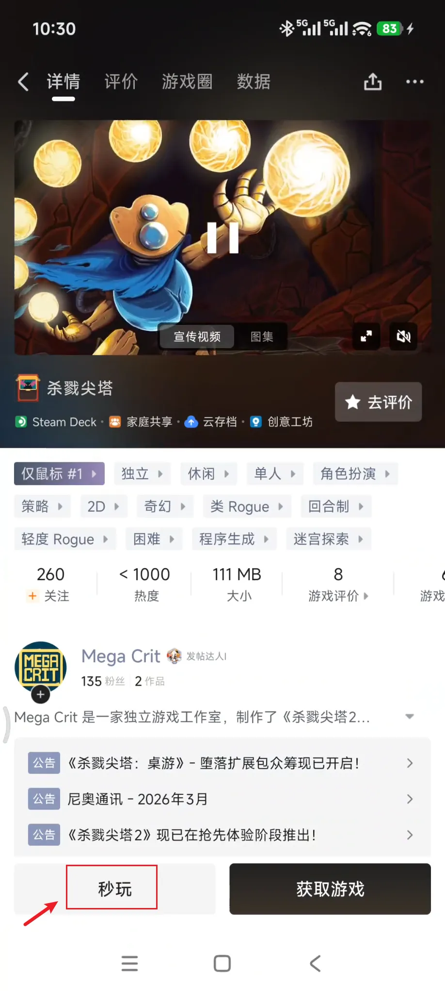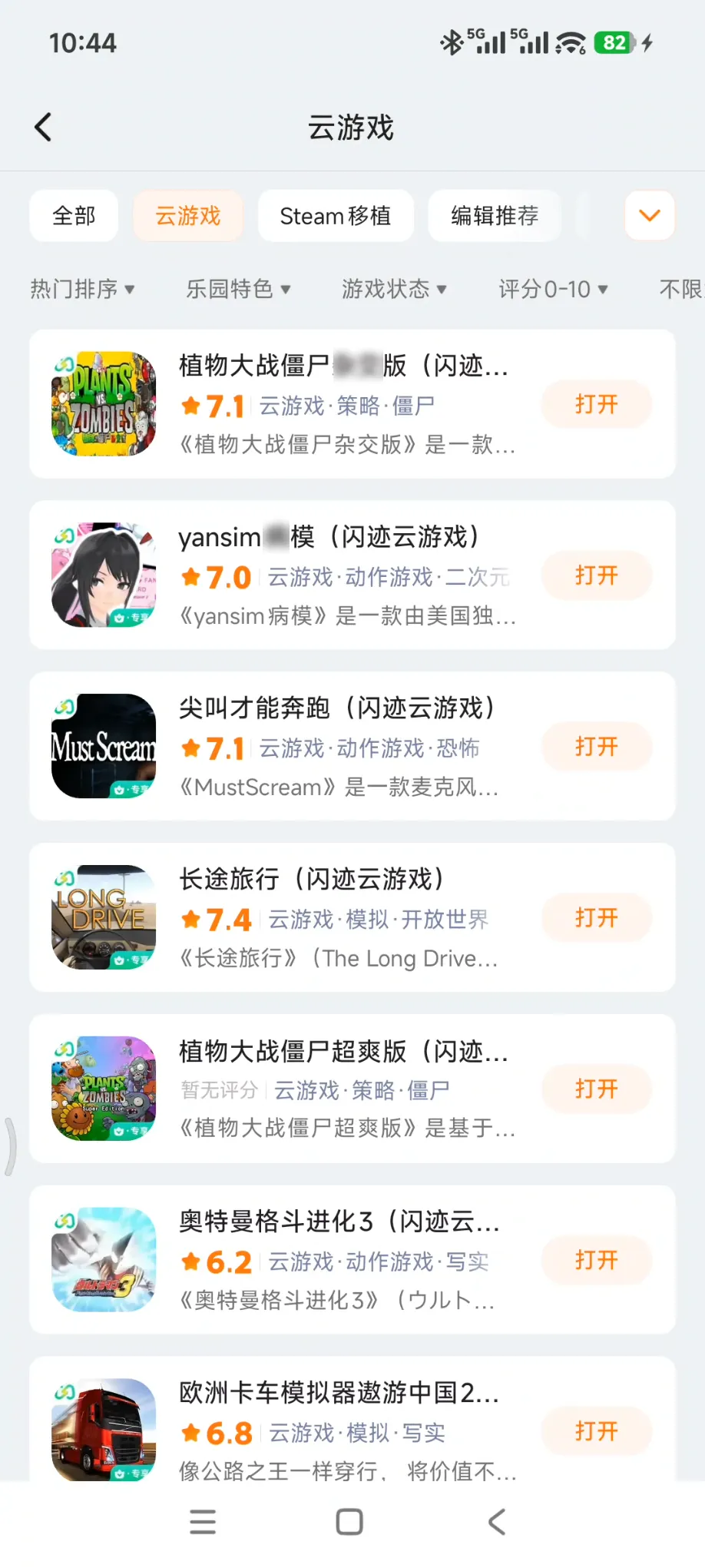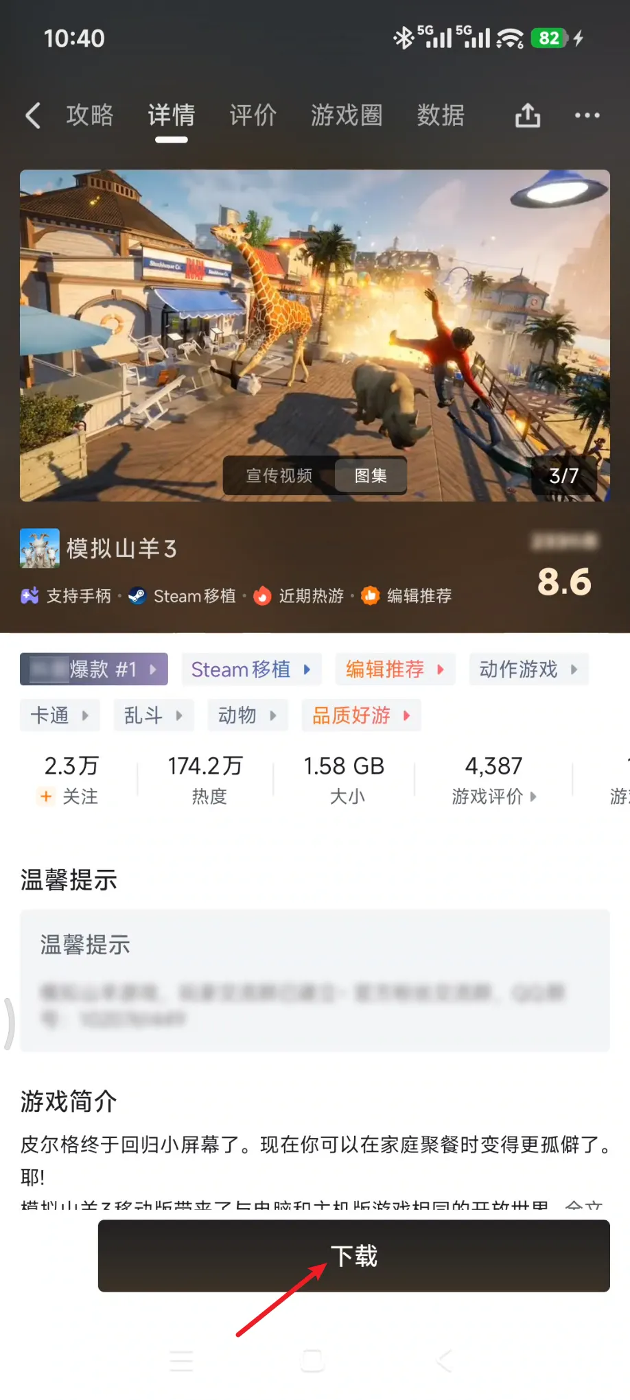 点开具体内容,也能看到完整的封面、简介、详情,底部也可以进行云游戏或下载。