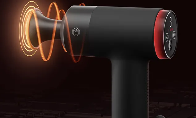 散热孔开在顶部和底部,用的时候手不容易挡住出风口,连续用个十几分钟后机身会有点温温的,但不会烫手,夏天用着也不会觉得不舒服。手柄表面做了细密的纹路处理,手掌出汗之后抓握感反而更明显,不会滑脱。整机造型偏简洁,没有多余装饰条,看着比较干净。