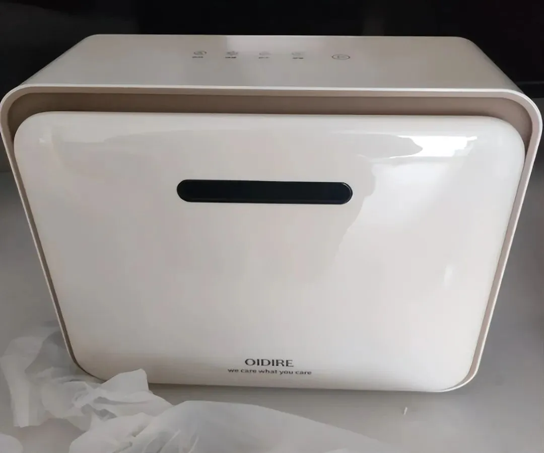 OIDIRE消毒柜采用飞利浦UVC灯珠,单颗功率较高,消毒时间可缩短至16分钟。16L容量适合双胞胎家庭使用。机身采用ABS+PC材质,表面磨砂处理,不易留指纹。