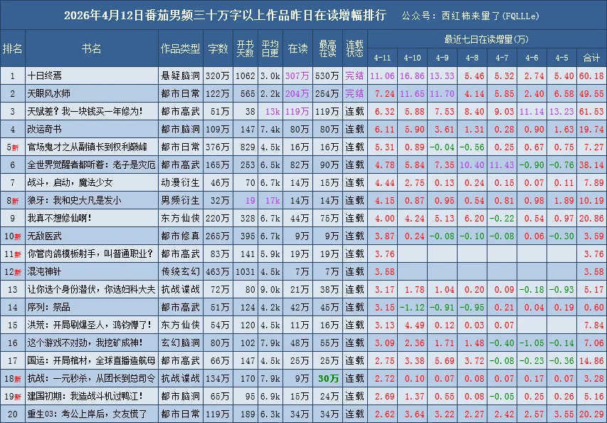 是根据番茄原创阅读榜