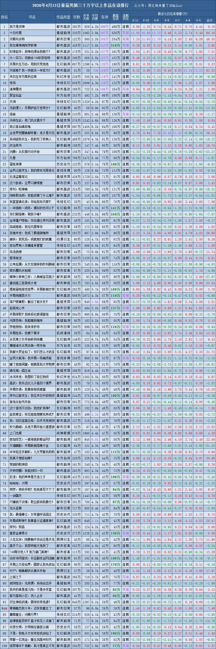 最高在读:是从作品首次被收录至今,且只含上榜时的最高在读,所以,并不完全准确