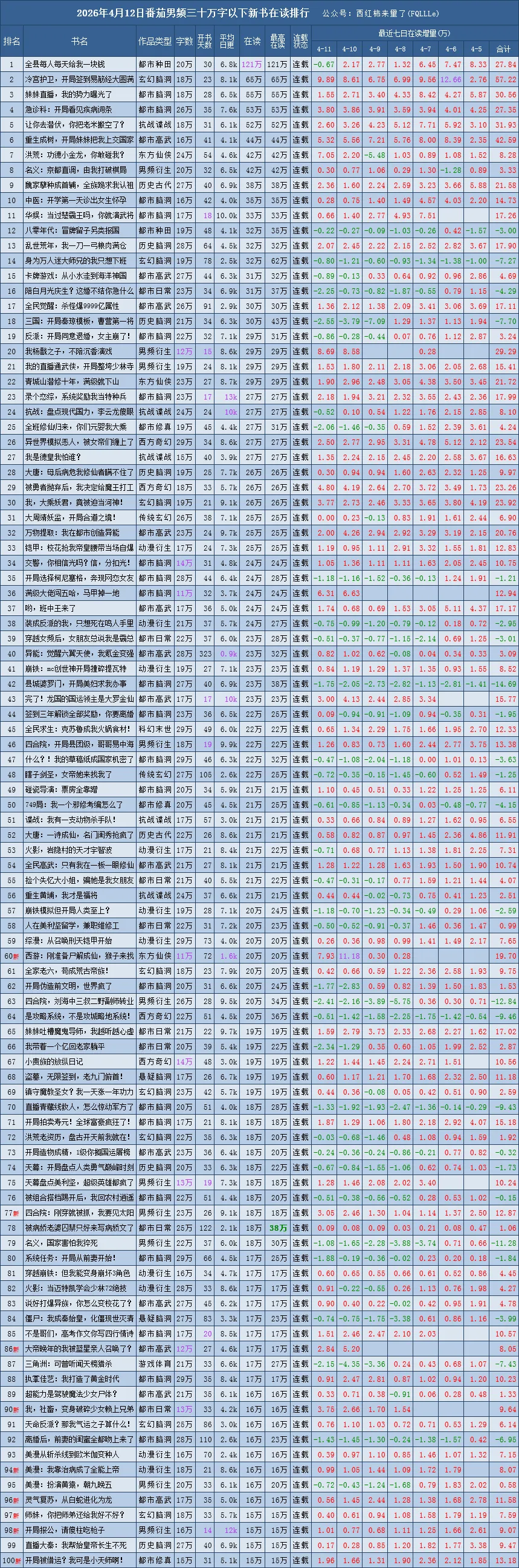 平均日更字数的计算方式,为总字数÷从开书到最后一次更新天数,所以有断更的作品会比实际偏低
