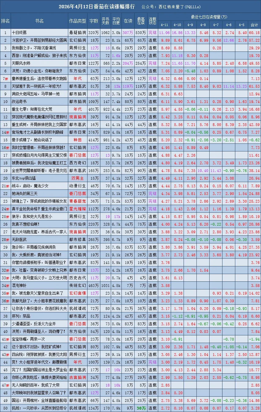 是根据番茄原创新书榜、阅读榜的在读数据