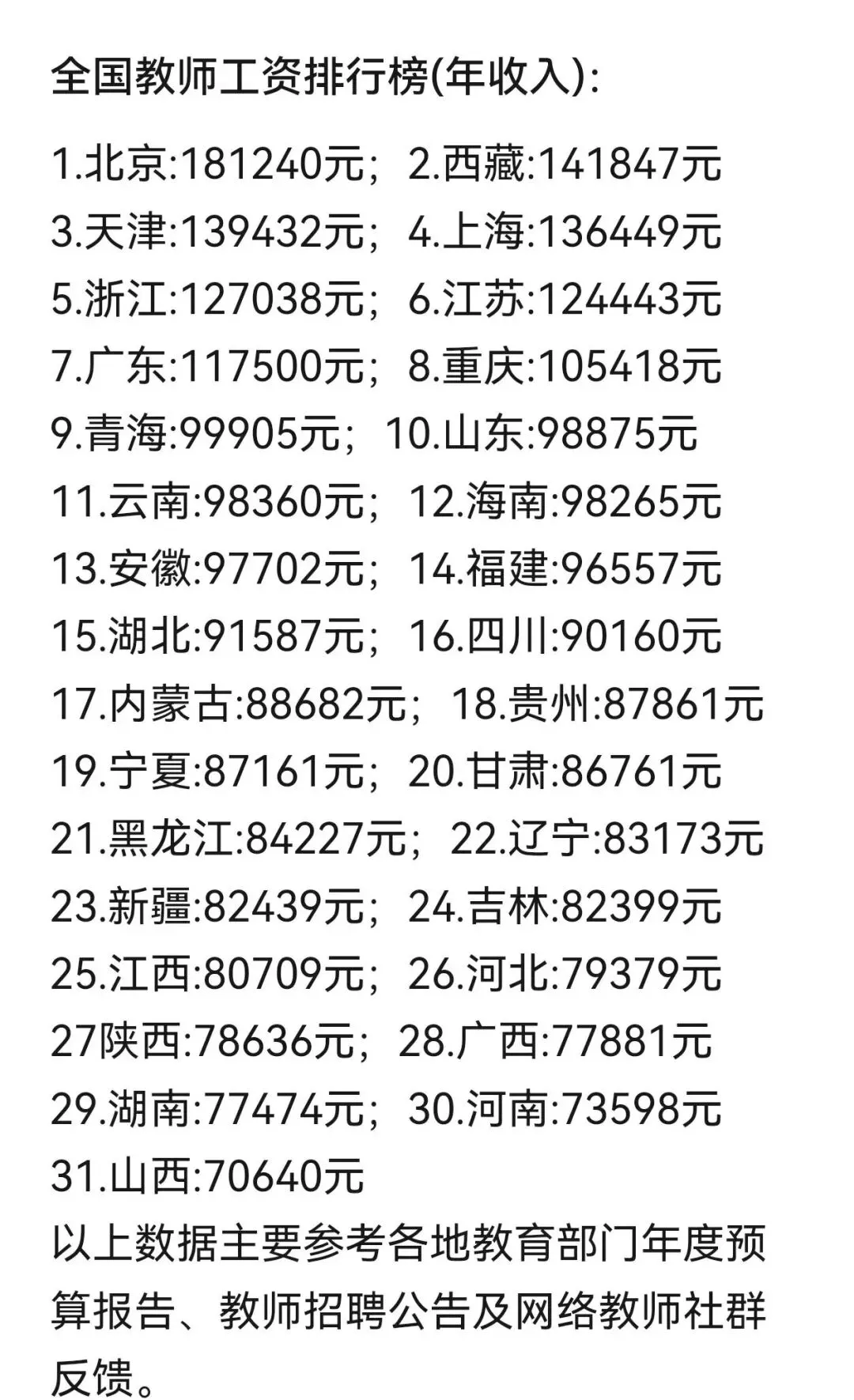 据说,这份数据参考了各地教育部门预算、招聘公告和教师社群反馈,并非空穴来风,这也让倒数第一的排名更显沉重。