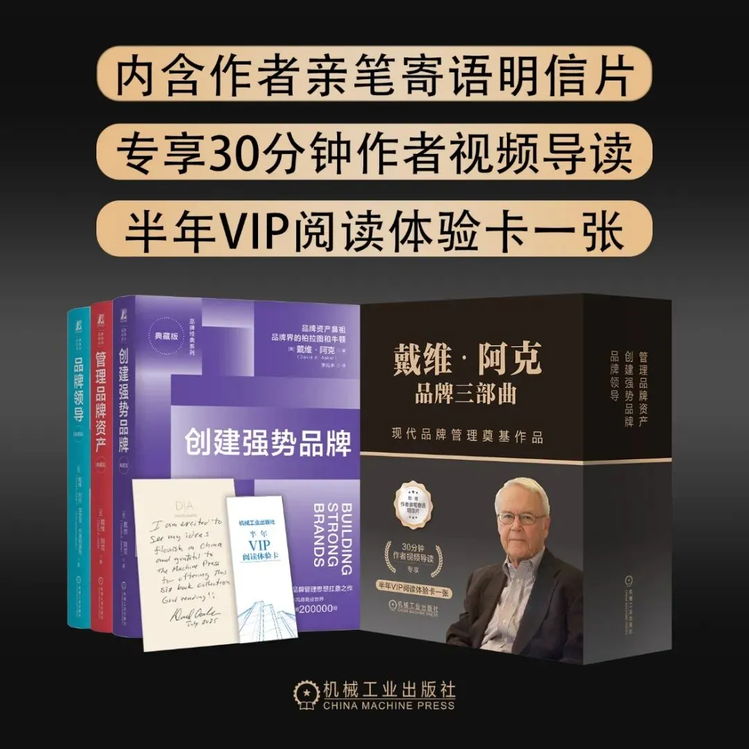 无论是送给自己,作为提升专业能力的进阶指南;还是送给身边的品牌从业者,作为一份极具价值的礼物,这套「戴维·阿克品牌三部曲礼盒」,都堪称首选。