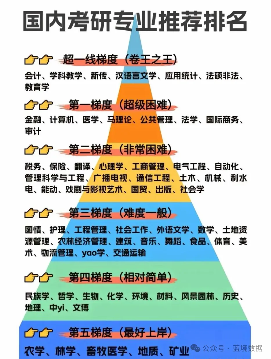 1.金融专硕(MF):经管类核心卷王,名校报录比20:1起,复试线380+;数学三+专业课难度高,就业上限高,吸引大量理工科跨考,头部院校推免占比超70%,统考名额极度稀缺。