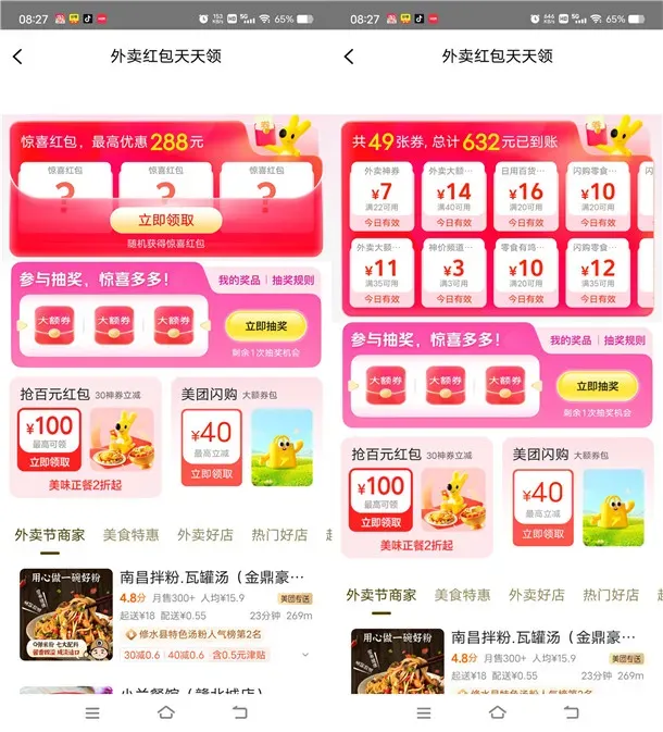 不限量领20减10~15元外卖券不限量领28减11~18元外卖券