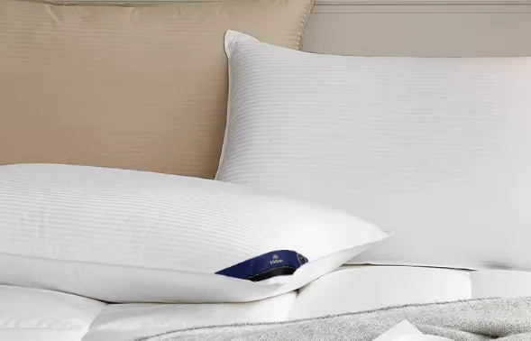 ►该品牌枕头延续酒店寝具的基础风格,枕形多为茧型或常规平面款,能基本贴合头部轮廓,部分款式采用中空纤维填充,兼顾一定的蓬松度与柔软度。