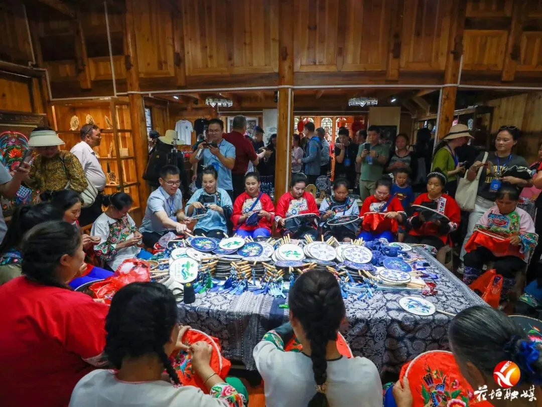 游客参观十八洞苗绣乡村振兴示范基地