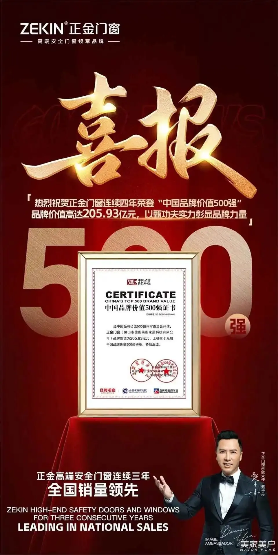 正金门窗以高达205.93亿元的品牌价值,连续四年跻身“中国品牌价值500强”之列,这份荣誉不仅是对品牌综合实力的权威认证,更彰显了行业与资本市场对正金门窗发展潜力的高度认可。站在新的起点,正金门窗将坚守匠心本源,以“甄功夫”品质为基石,以持续创新为引擎,在时代浪潮中稳步前行。