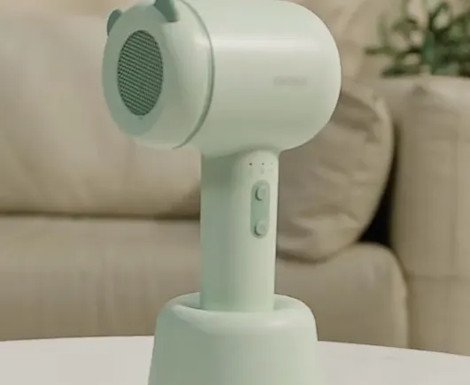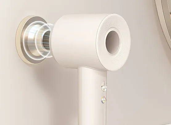 ▷ 支持低辐射设计,适合儿童和宠物使用,噪音约56分贝,声音柔和,机身质感细腻,放在家中可起到一定装饰作用。风嘴可旋转,打理发型更灵活,适配不同吹发角度需求。