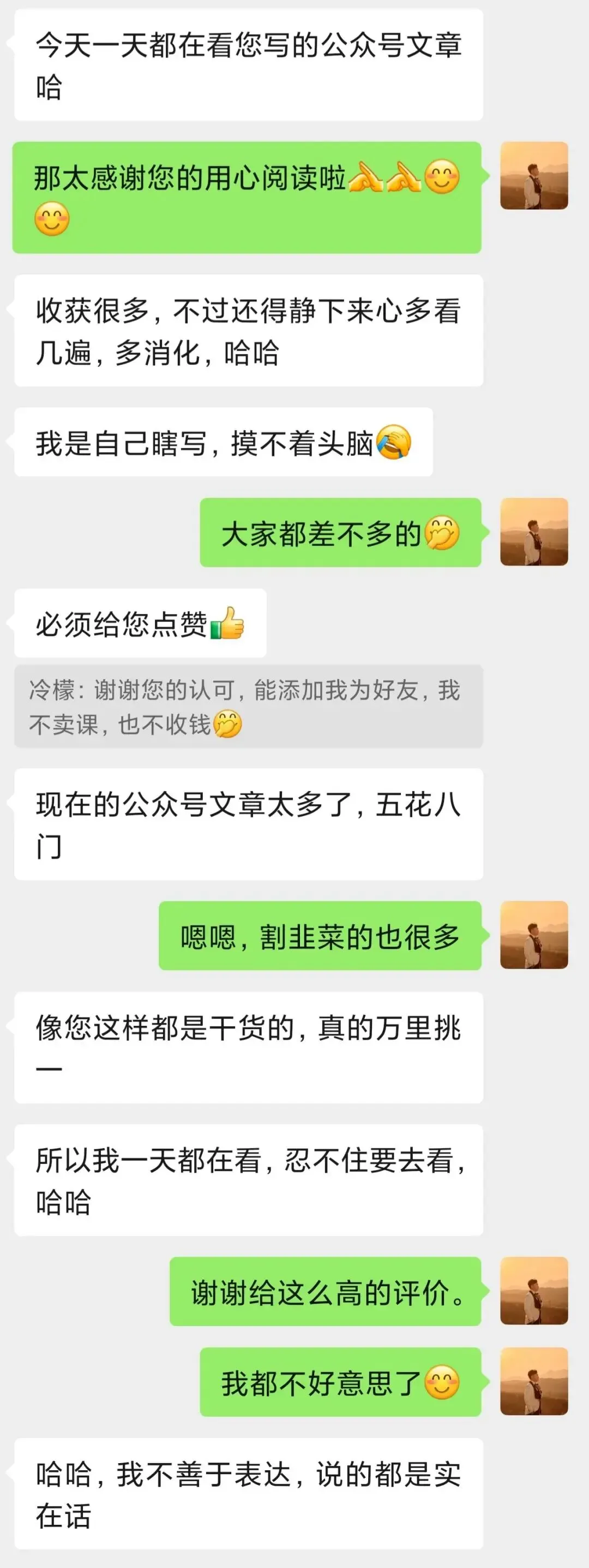 今天一天都在看你写的公众号文章哈;像你这样都是干货的,真的万里挑一;所以我一天都在看,忍不住要去看哈哈~