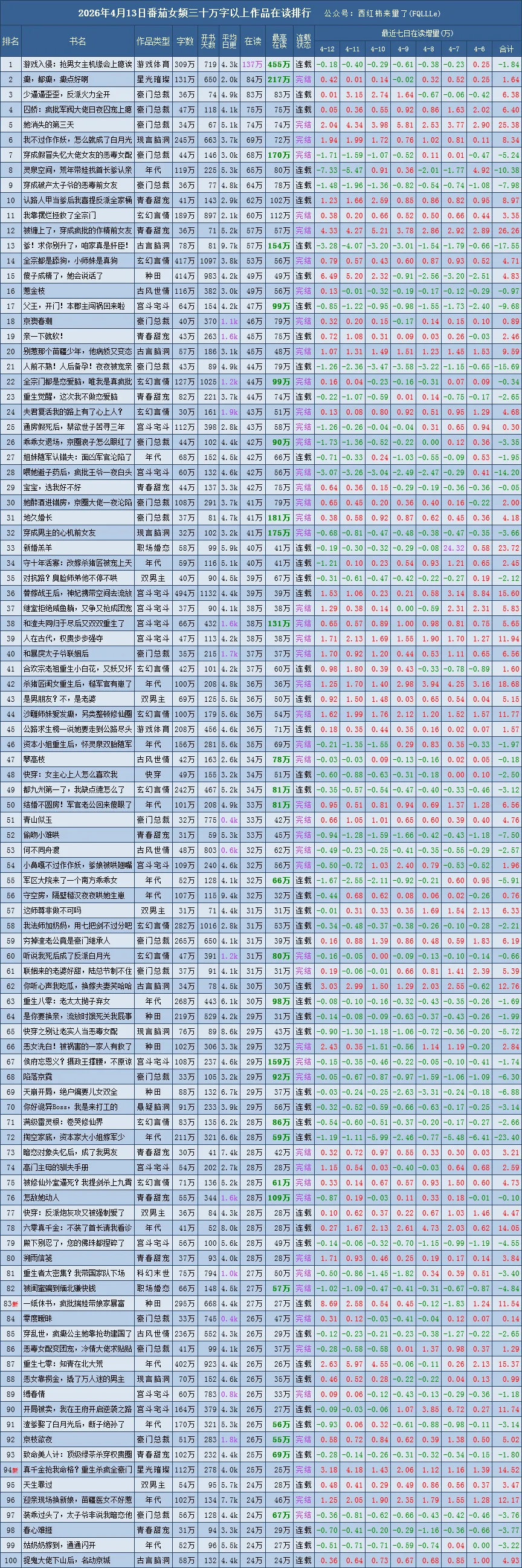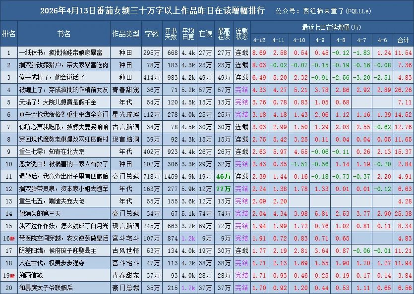 番茄阅读榜范围:30万字以上、已签约未下架、已经开始推荐的番茄原创作品