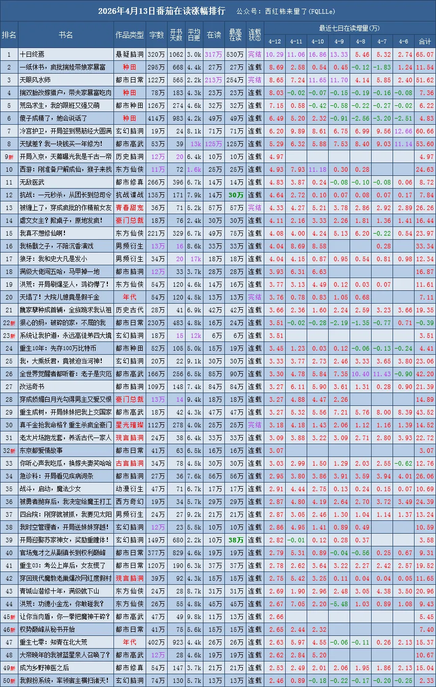 是根据番茄原创新书榜、阅读榜的在读数据