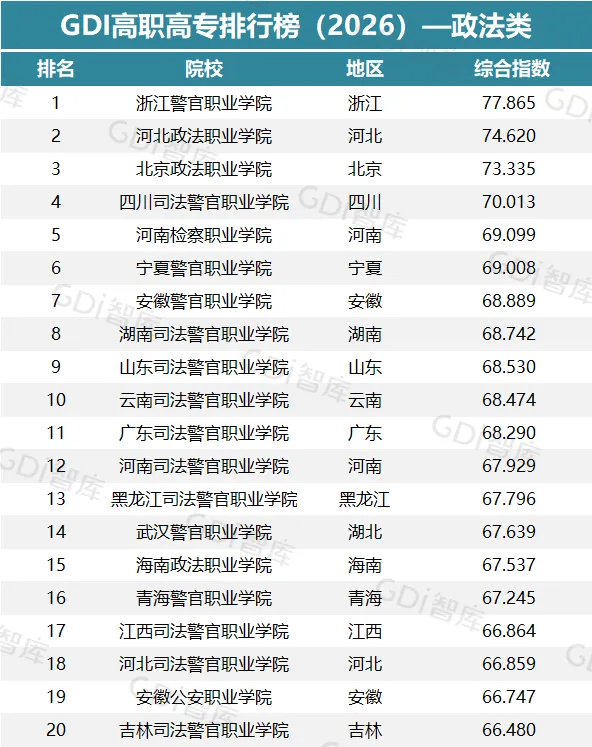 4月15日,广州日报数字化研究院(GDI智库)发布“GDI高职高专排行榜(2026)”,榜单以教育部最新一次公布的《全国普通高等学校名单》为依据(剔除升本院校及停止办学院校),对全国1501所高职院校(不含香港特别行政区、澳门特别行政区和台湾地区院校)展开科学评价。