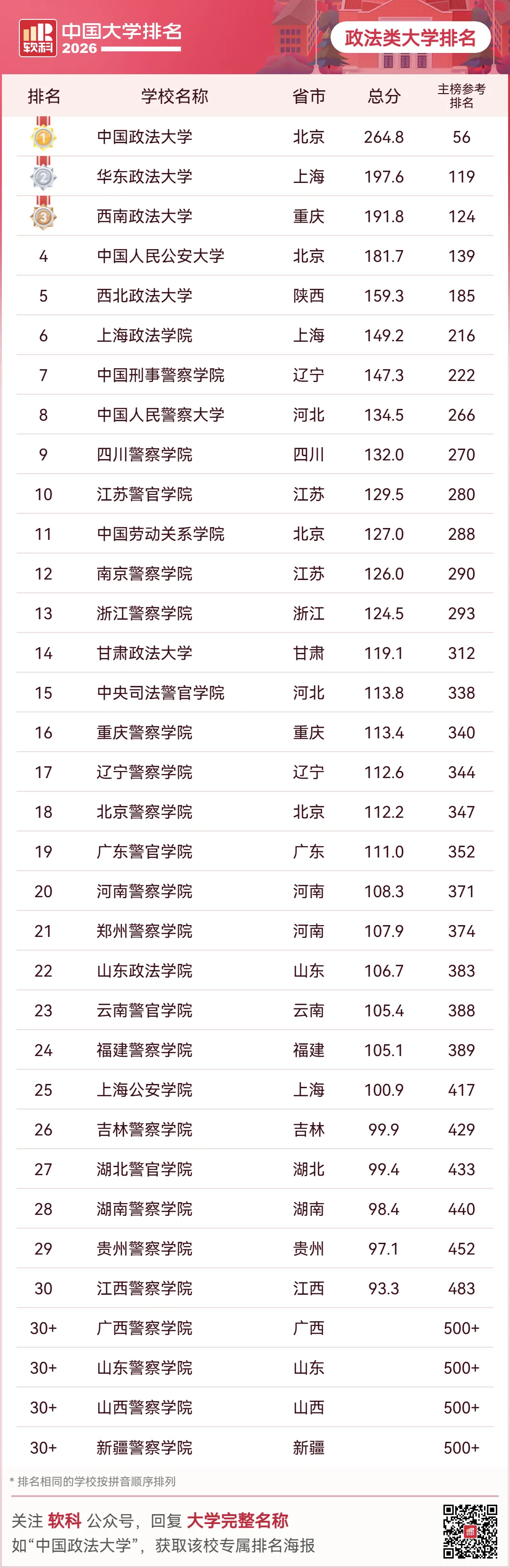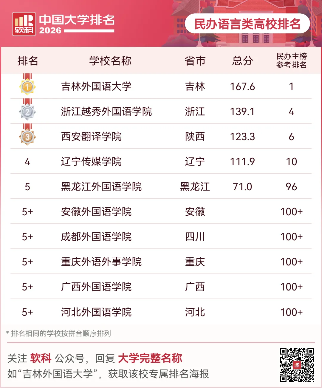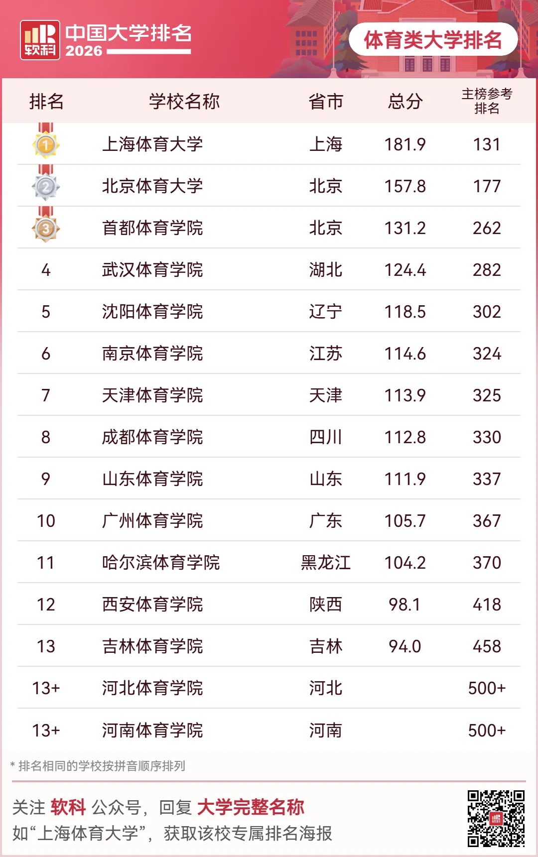 “2026软科中国大学排名”的对象是中国1000多所本科层次的高校,为恰当反映高校在学校性质和学校类型上的差异、确保排名的公平性,软科将高校划分为综合性大学、8类单科性大学、4类非公办大学,采用差异化的指标体系分别排名。
