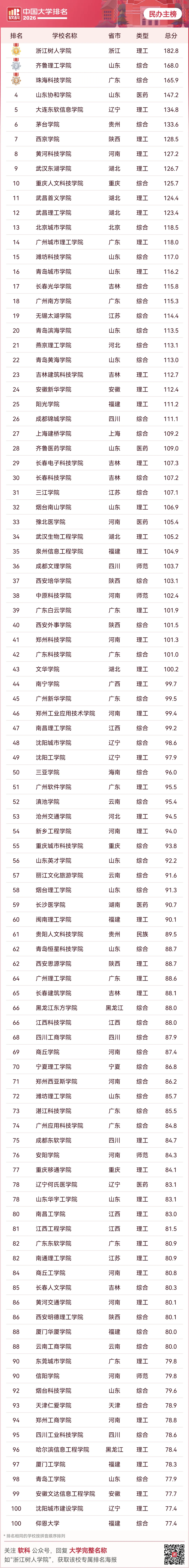 2026软科中国大学排名TOP100(主榜)浙江上榜高校共有5所,分别为浙江大学(3名)、浙江工业大学(68名)、宁波大学(78名)、浙江师范大学(91名)、杭州电子科技大学(99名)。