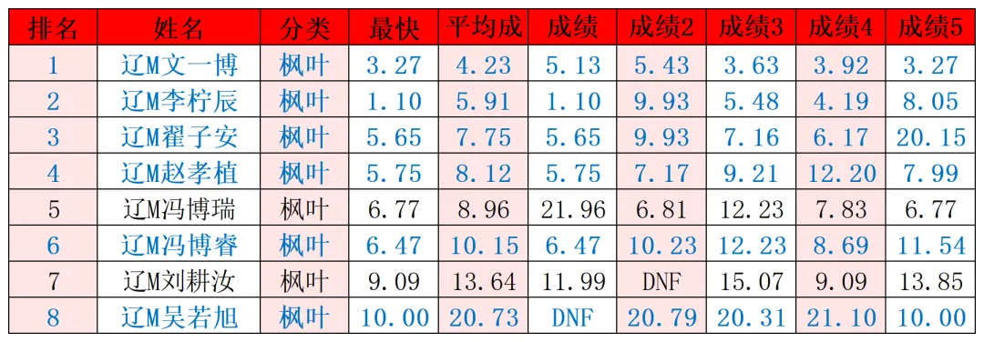 枫叶魔方辽宁魔方公开排位赛-枫叶魔方排位赛